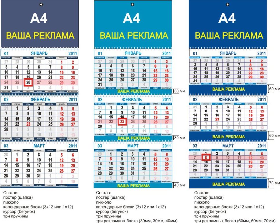| Календарь с печатью на всех 4-х блоках | 130 | 122 | 109 | 97 |